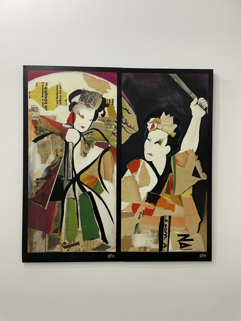 Sayonara, collage, pintura acrílica sobre madera, 122x119cm. 2025